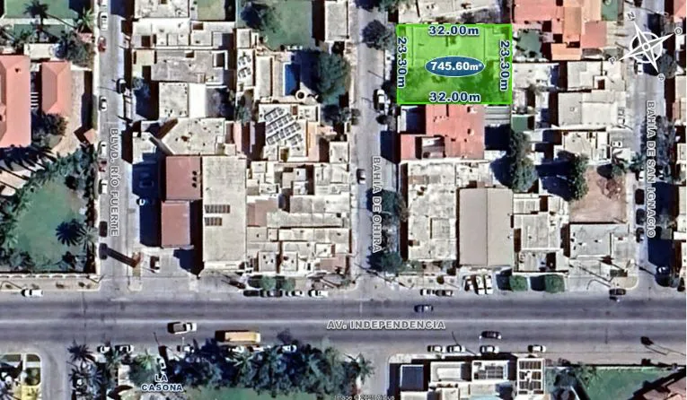 Terreno: 745.60 m2 con (Frente: 23.30m Fondo: 32m) Terreno rectangular, regular.